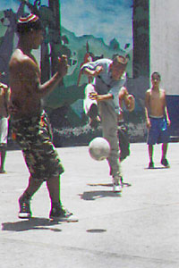 Hofes kicken. Ich habe mich einfach eingemischt und ein wenig mitgespielt.